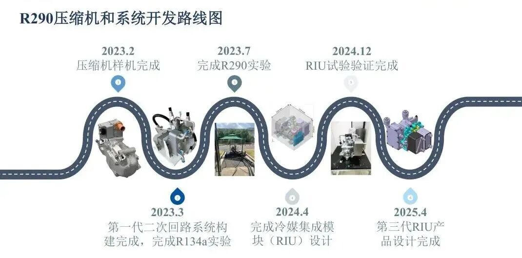 公司从法规要求、物性特点及工程应用角度,对R290制冷剂在新能源汽车热管理系统中的适配性进行了研究梳理。相较传统制冷剂,R290在单位容积制冷量、换热效率及低温性能方面具备一定优势,可在满足同等制冷需求的前提下,实现压缩机小型化、轻量化设计,为整车热管理系统集成优化提供更多空间。